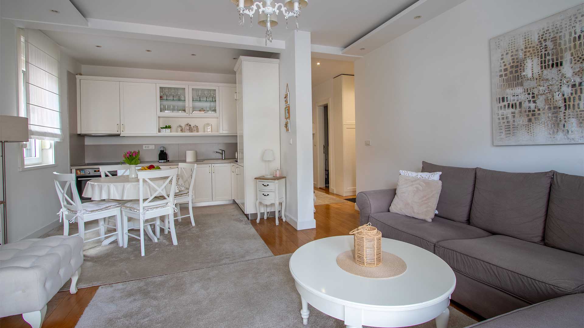 Prostorije: dnevna, kuhinja sa trpezarijom, 2 spavaće sobe, kupatilo, wc, terasa.